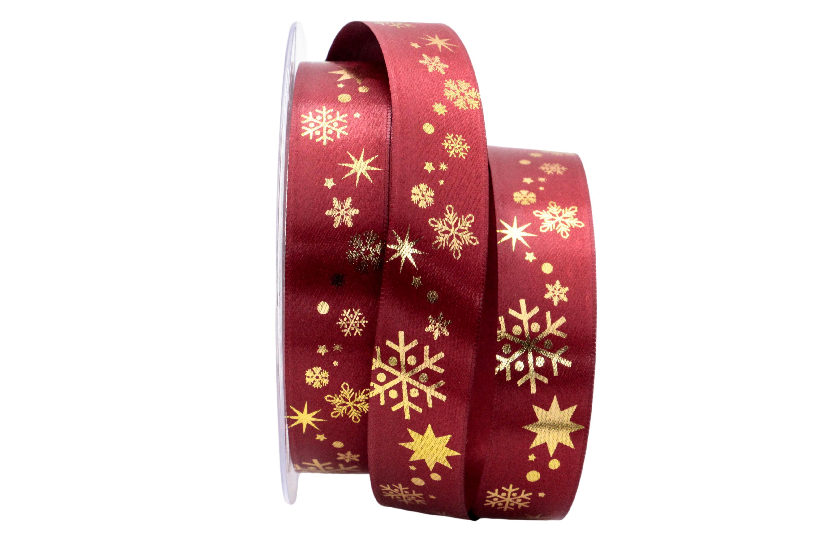Ein Doppelsatinband mit Schneeflockendruck. Dieses einfache aber sehr feine Dekoband ist vielseitig einsetzbar. Ob für die Gestaltung von Schleifen oder zum Basteln von Karten. Mit diesem Geschenkband können Sie jedem Gegenstand oder Geschenk den letzten Schliff verpassen.