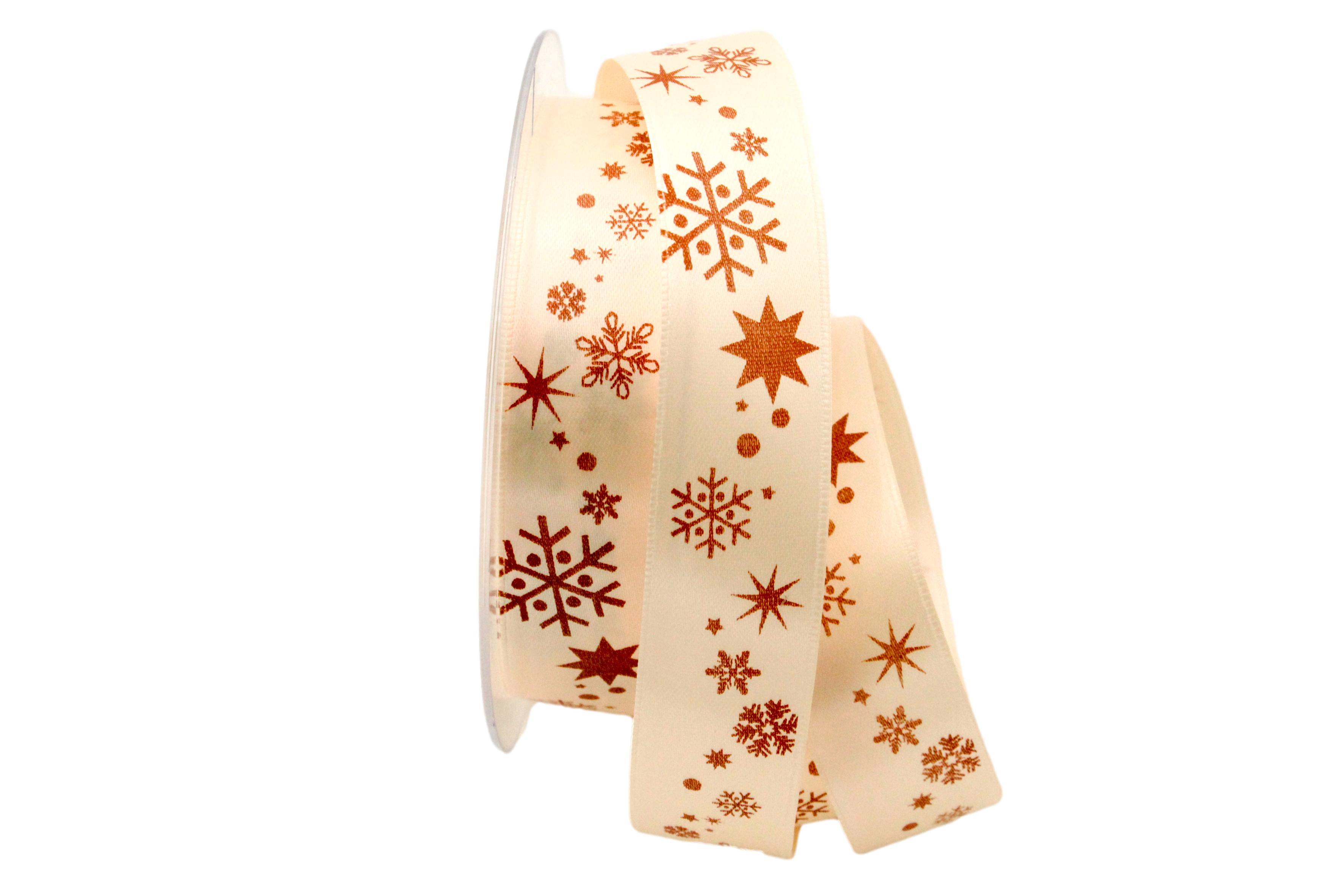 Ein Doppelsatinband mit Schneeflockendruck. Dieses einfache aber sehr feine Dekoband ist vielseitig einsetzbar. Ob für die Gestaltung von Schleifen oder zum Basteln von Karten. Mit diesem Geschenkband können Sie jedem Gegenstand oder Geschenk den letzten Schliff verpassen.