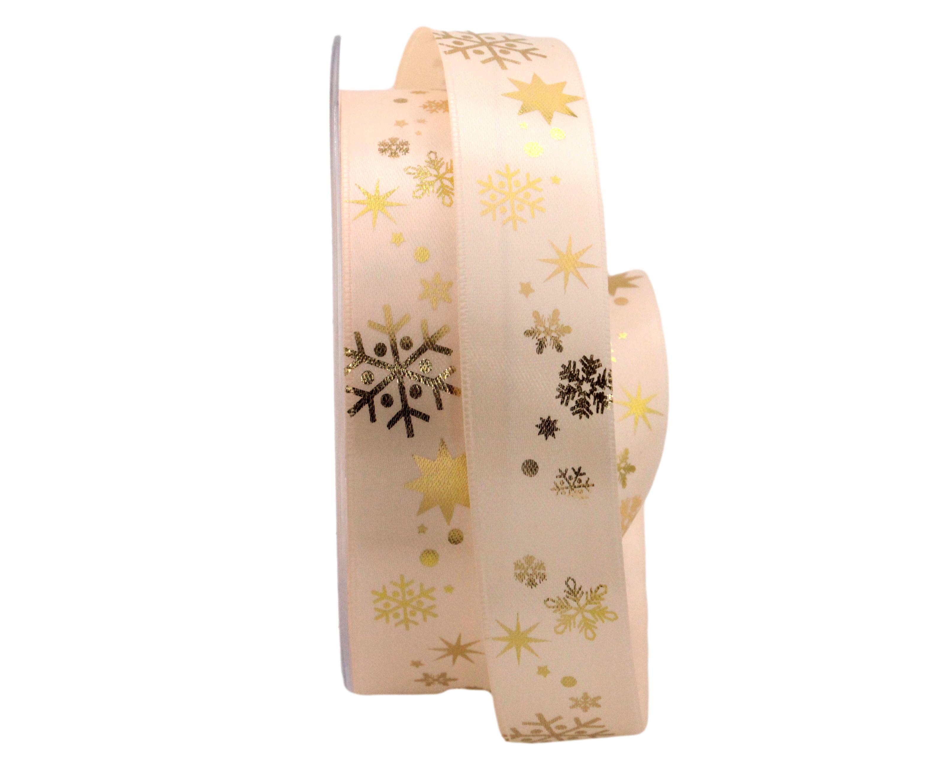 Ein Doppelsatinband mit Schneeflockendruck. Dieses einfache aber sehr feine Dekoband ist vielseitig einsetzbar. Ob für die Gestaltung von Schleifen oder zum Basteln von Karten. Mit diesem Geschenkband können Sie jedem Gegenstand oder Geschenk den letzten Schliff verpassen.