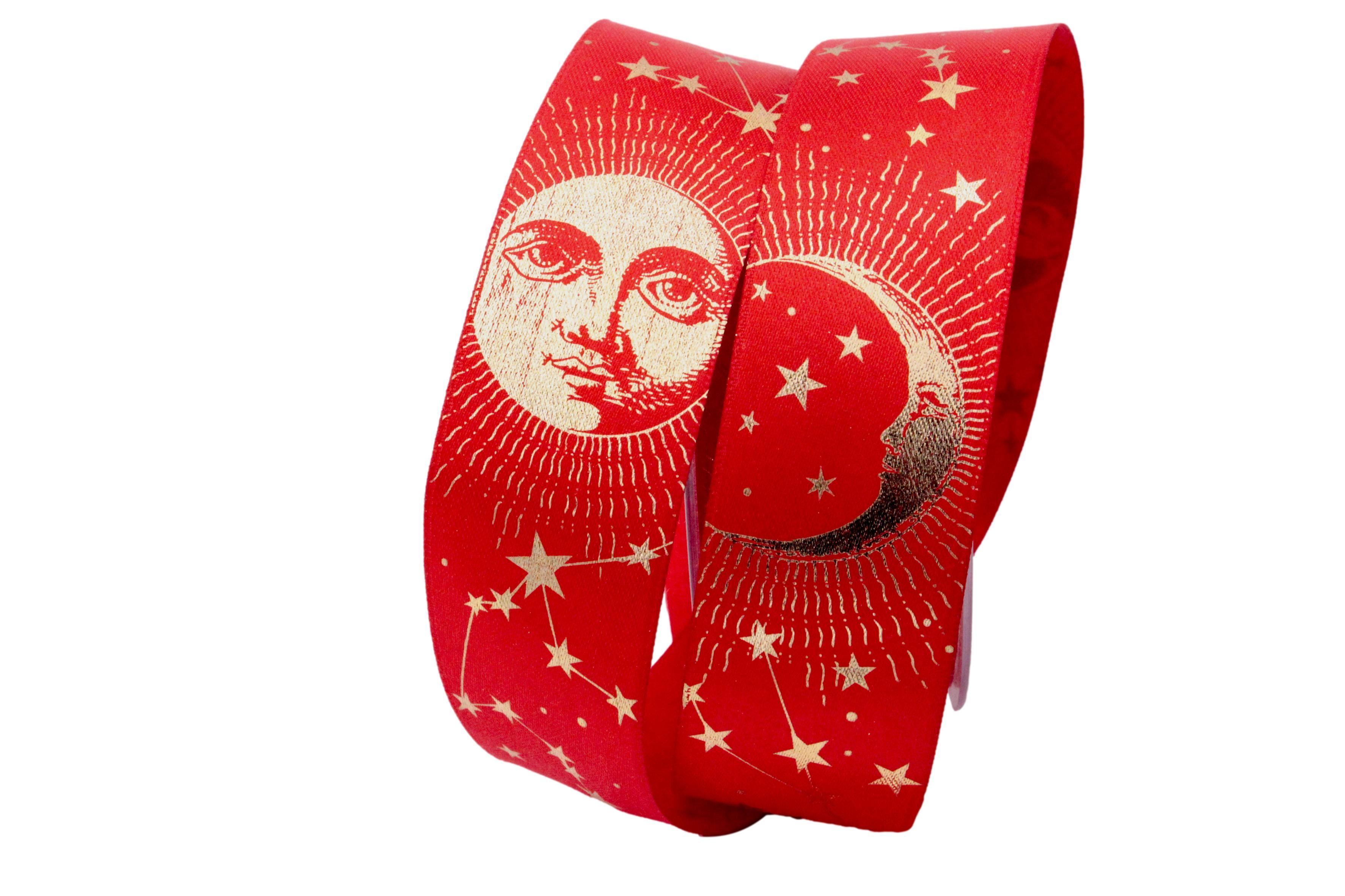 Ein sehr edles bedrucktes Satinband mit Sonne Mond und Sterne. Ob zu Weihnachten oder zu anderen Anlässen, dieses Dekoband ist wunderschön in jeder Verpackung, Dekoration und Tischgestaltung.