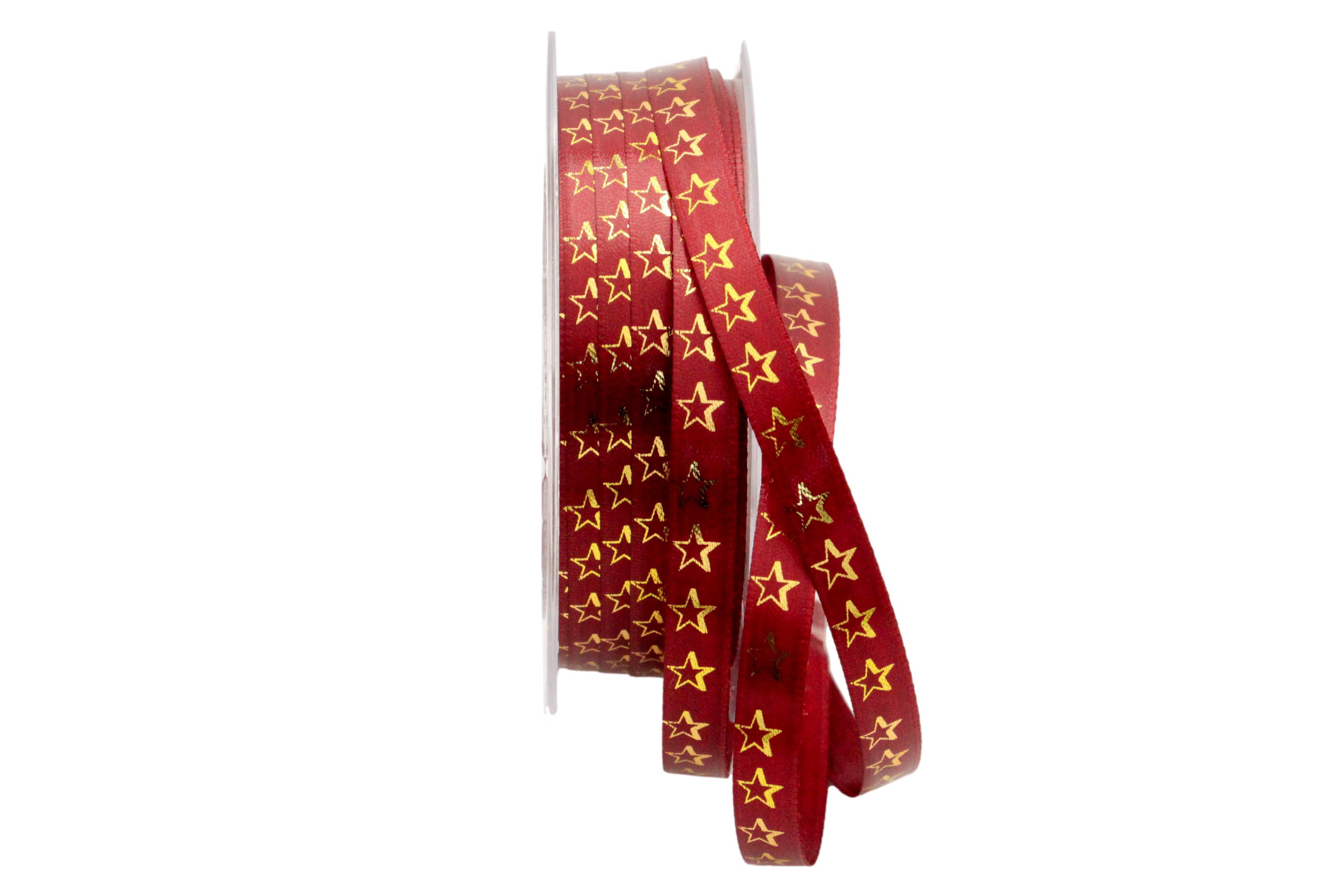 Weihnachtsband Sternchen bordeaux / gold 10mm ohne Draht