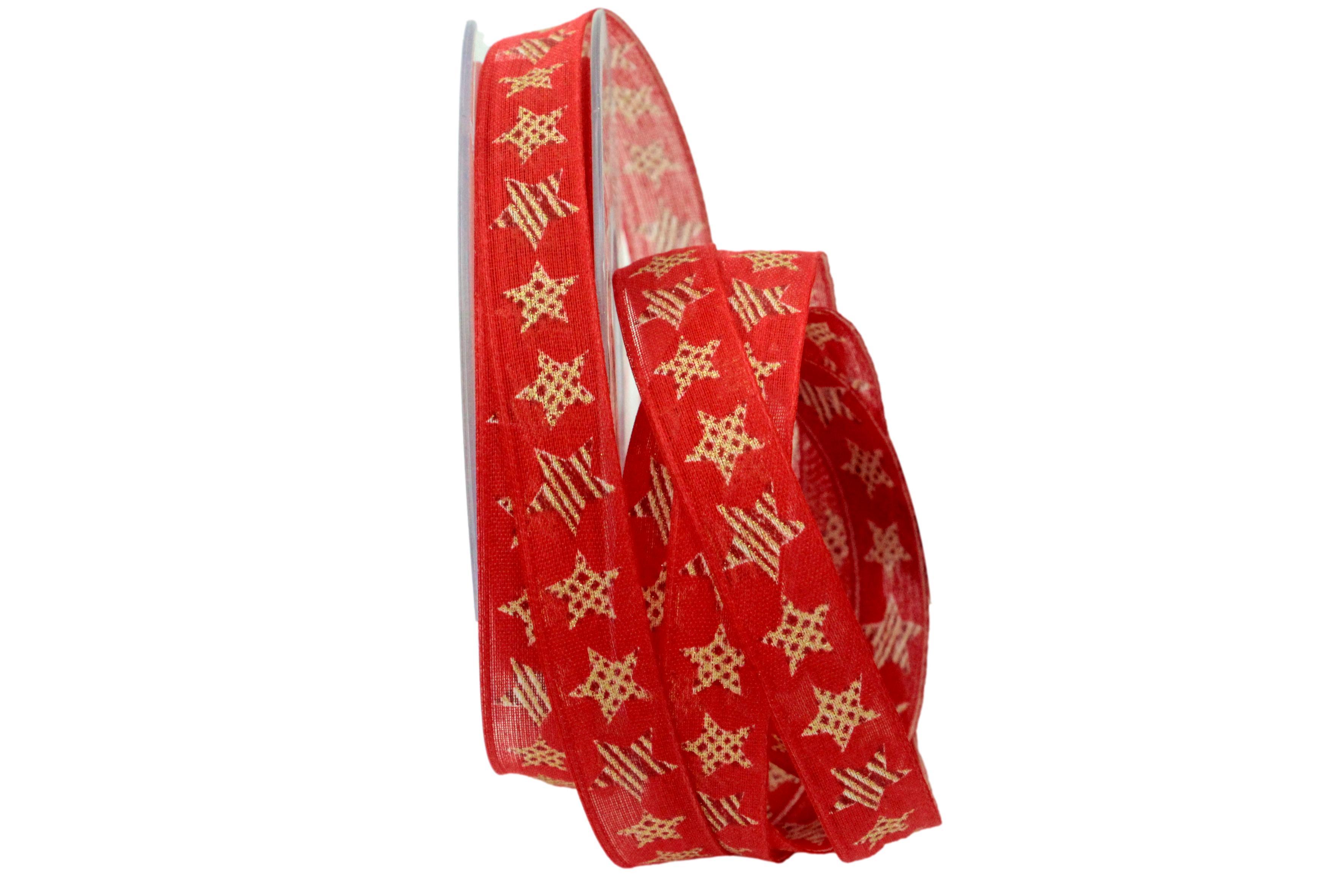 Länge: 20m Breite: 15mm Farbe: rot / gold Material: 77 % Baumwolle / 23 % Polyester