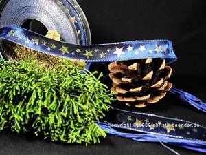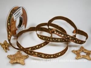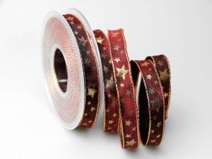 Ein traditionelles Weihnachtsband mit goldenem Sterndruck und goldfarbenem Rand.