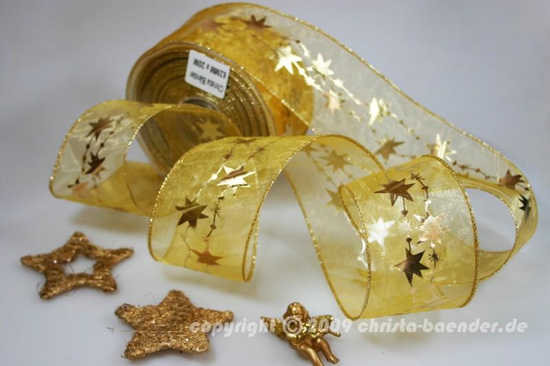 Weihnachtsband Sternentraum Gold mit Draht 62mm