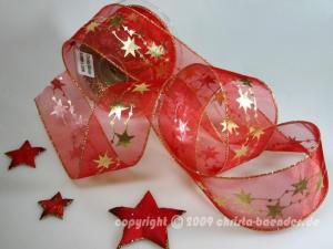 Ein sehr fein verarbeitetes Schleifenband mit Sterndruck. Perfekt für die Weihnachtliche Dekoration und Geschenkverpackung.