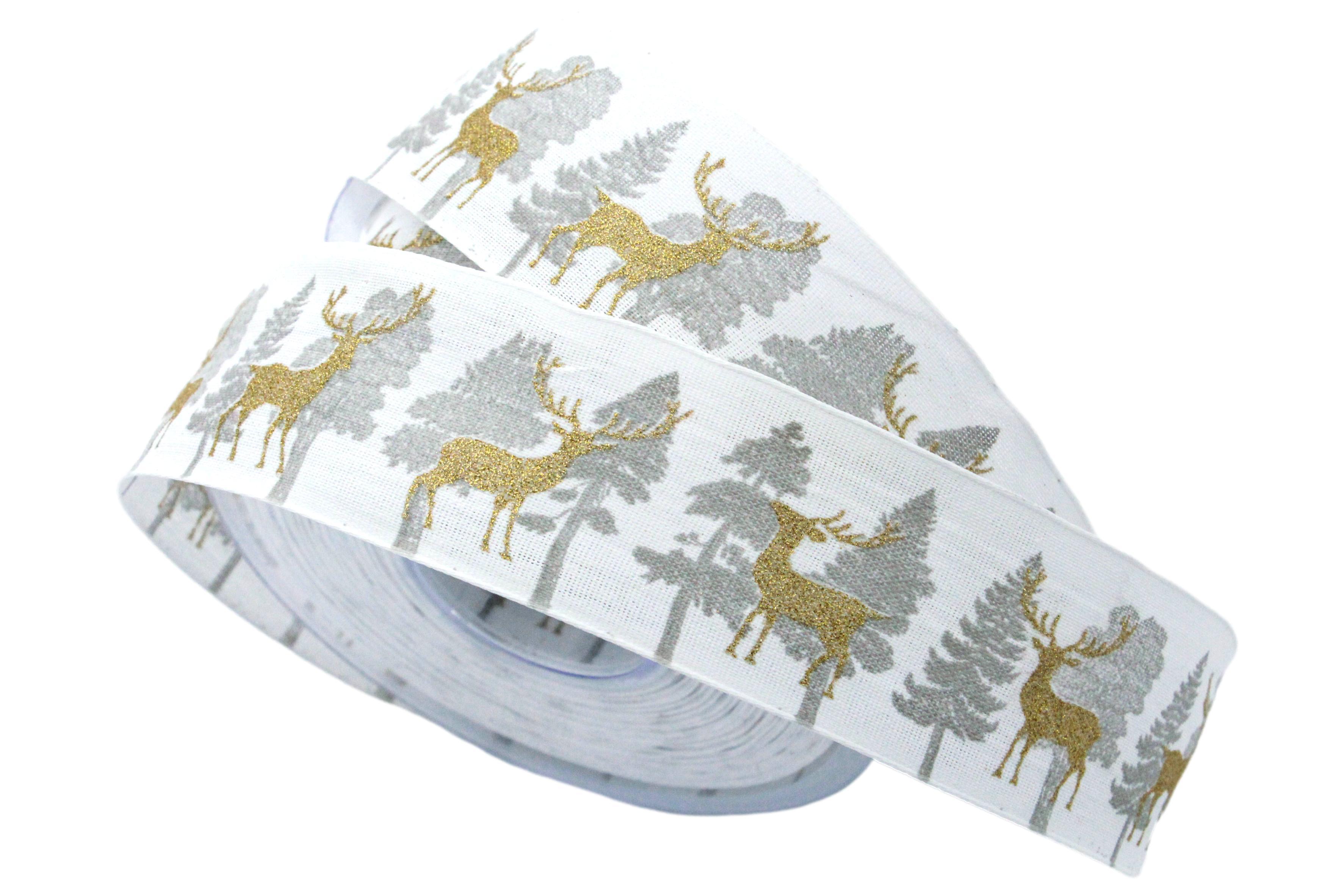 Weihnachtsband Waldelch weiß 40mm mit Nylonkante